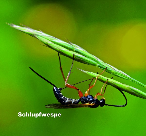 Die Schlupfwespen (Ichneumonidae) bilden vermutlich die artenreichste Familie der Hautflügler, es sind etwa 30.000 Arten beschrieben, und es werden ca. 60.000 Arten geschätzt. Sie kommen auf allen Kontinenten außer Antarktika vor.[1][2] In Deutschland sind mehr als 3.600 Arten bekannt,[3] in der Schweiz fast 1.500 Arten[4] und in Mitteleuropa mehr als 4000 Arten. Schlupfwespen sind schlank und haben meist einen deutlichen Legebohrer, der auch sehr lang sein kann. Die Larven der Schlupfwespen leben durchweg als Parasitoide. Parasitiert werden holometabole Insekten, am häufigsten Schmetterlinge, Pflanzenwespen, Käfer und andere. Einige spezialisierte Formen parasitieren auch in Spinnenkokons, wo sie sich von den Spinneneiern ernähren, oder als Ektoparasiten an den Spinnen selbst. Die Wespen der Gattung Polysphincta saugen an den Hinterleiben von bestimmten Radnetzspinnen und bringen diese durch biochemische Zusätze dazu, ein anderes Webmuster zu verfolgen. Sie lassen sich Kokons als Bruthöhle bauen. Danach werden die Spinnen getötet.[7] Hemimetabole Insekten jedoch werden nach bisherigem Kenntnisstand von dieser Familie verschont (nicht jedoch etwa von den Erzwespen, die auch zu den Legimmen zählen).
